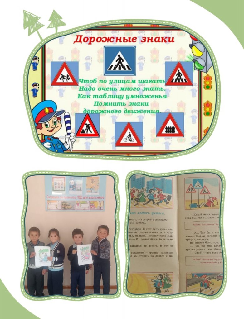 1–4 сыныптарда оқушылар жол қозғалысы ережелерімен танысқан «Жол белгілері» тақырыбында ЖҚЕ сабағы өткізілді.